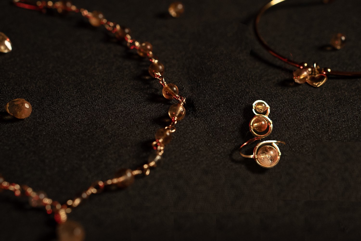 Beaded necklace, 25 pieces of Citrine, each individually and carefully wrapped with non-tarnish wire. Adjustable, chocker-22in