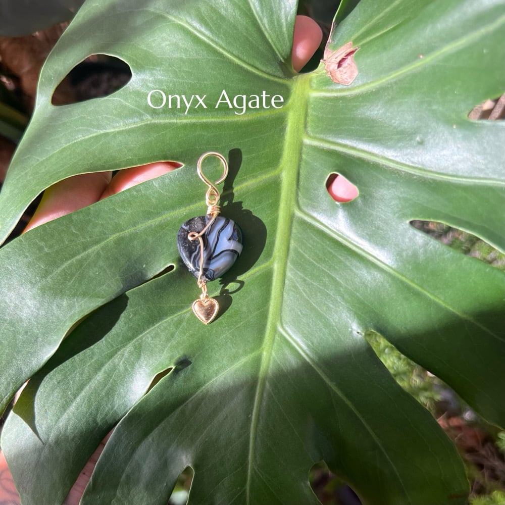 ⚫ Onyx Agate — A protective stone that absorbs negative energy, promotes inner strength, and encourages grounded confidence. Connects with the Root Chakra.